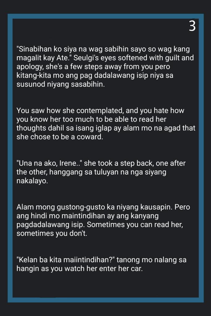 Ang mga kaibigan ay may malakas na impluwensya sa ating pagkilos lalo na sa ating kabataan. Bumuga si Kyungsoo ng hangin gusto na rin niyang makita ang mga kaibigan niya dahil matagal na talaga silang hindi nabubuo. Biruin mo sa dami ng mga kaibigan mo ako pa.