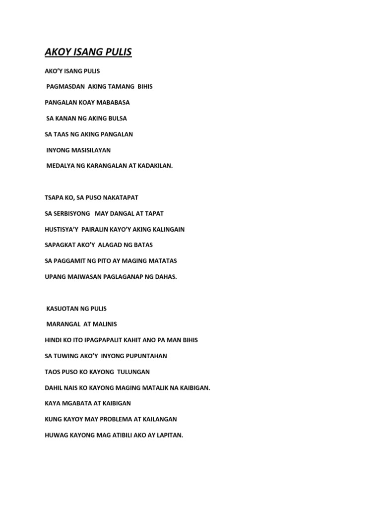Kadalasan wikang Tagalog ang ginagamit para sumulat nito. Masarap magkaroon ng tunay na kaibigan. Ipinagmamalaki din niya ang kanyang mga katangian na likas sa Pilipino.