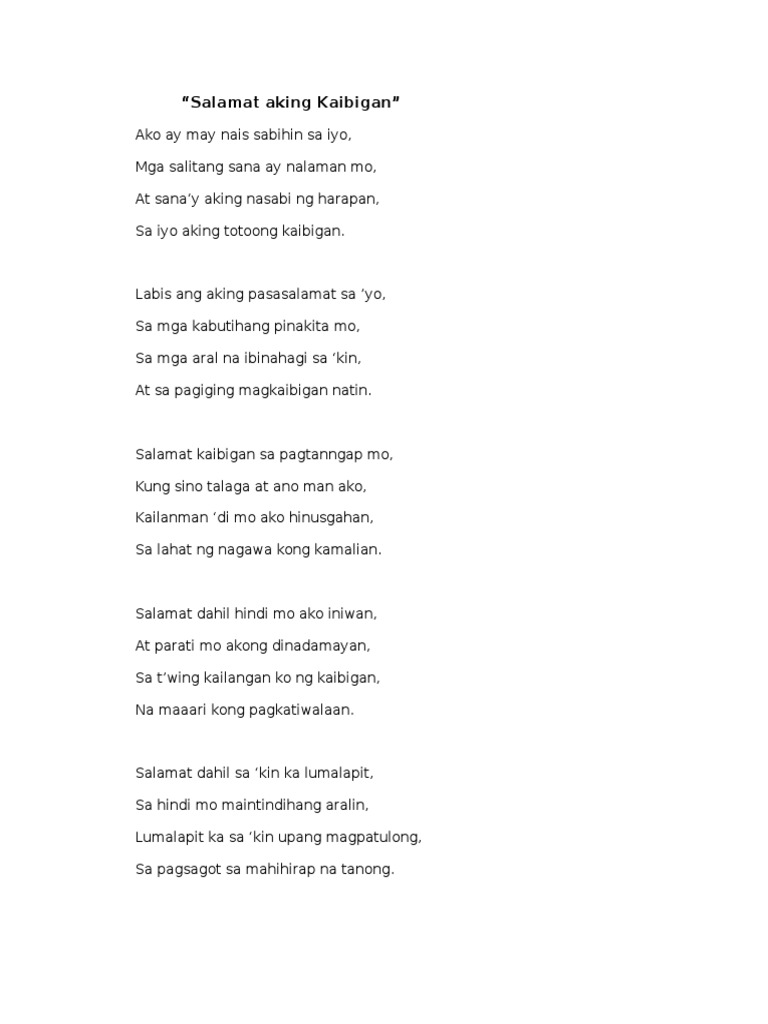 Kaibigan ako ng lahat ng natatakot sa iyo at ng mga sumusunod sa mga utos mo. Inaanyayahan ka ring tingnan. Mga Sanaysay Tungkol sa Kaibigan 8 Sanaysay Save.