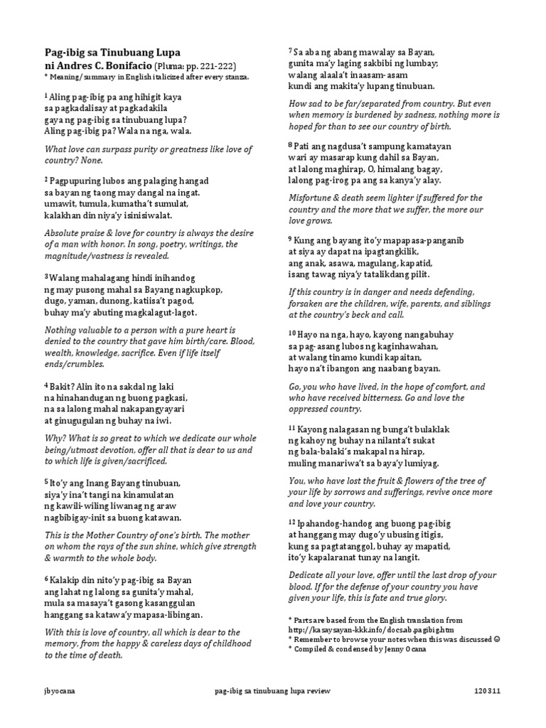 Explanationang tunay na pag ibig sa bayan ay nasa pawis gawa. Kahulugan ng pag ibig sa bayan. Dungaw awit sa patay.