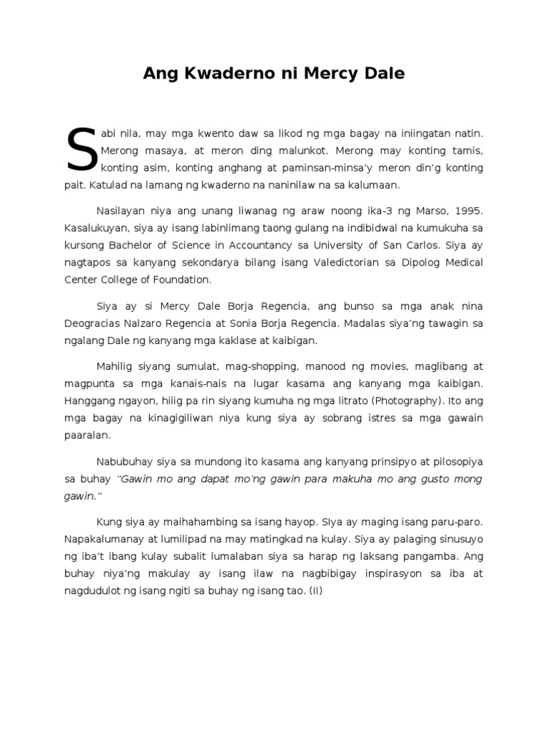 Damasco labingwalong taong gulang. Ako si Kimberly Maranan Ramosipinanganak noong taong 1995ika-23 sa buwan ng Pebrero sa dakong ika-8 ng umagaLabing lima taong gulang at nakatira sa Green Valley SubdivisionSan FranciscoCalihan San Pablo CityLagunaSa Col. Ang sakit na dulot ng kanyang nagawa ang nagdulot sa aking kalimutan iya katulad ng kanyang ginawa.