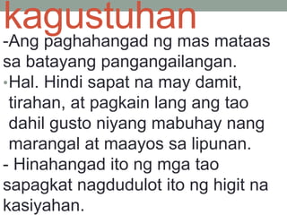 Paghahangad ng mabuti para sa sarili B. Pakikipagkaibigang nakabatay sa Pangangailangan-Ito ay pagkakaibigang inilaan sa isang tao dahil sa pangangailangan ng isang tao. Ng sarili sa kapwa 9.